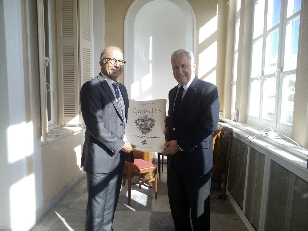 Στη συνάντηση ήταν παρών και ο Αντιπεριφερειάρχης Νοτίου Αιγαίου, κ. Γεώργιος Λεονταρίτης, ο οποίος συνόδευσε τον κ. Πρέσβη και τα στελέχη της Αμερικανικής Πρεσβείας από την έδρα της Περιφέρειας Νοτίου Αιγαίου, στην οποία είχε προηγηθεί ανάλογη συνάντηση.