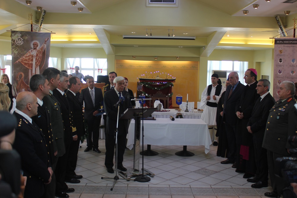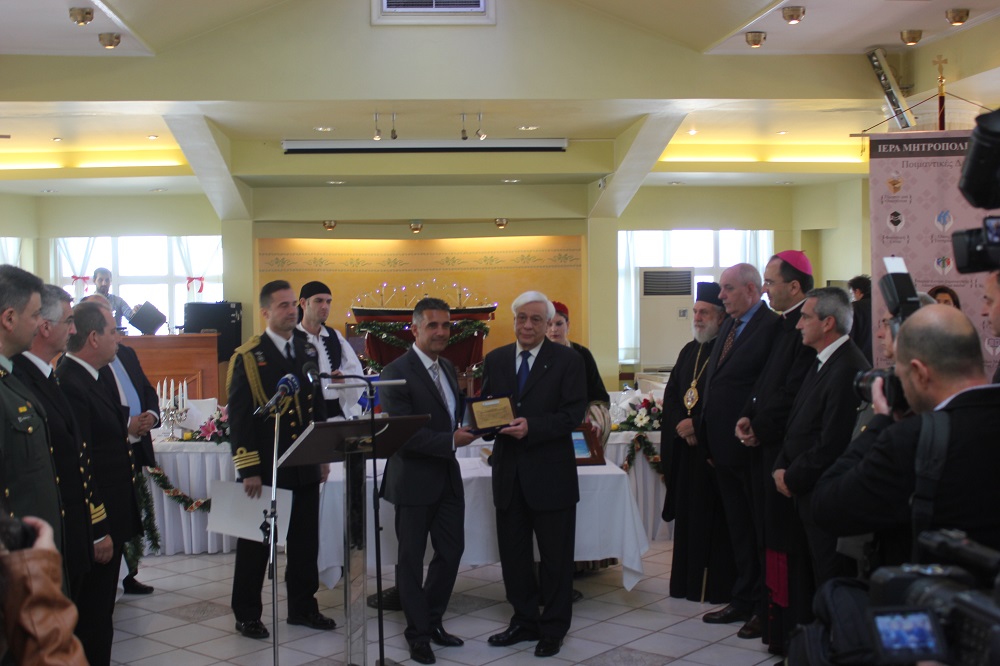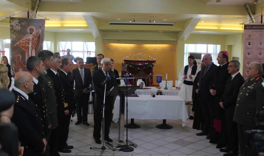 Τον Πρόεδρο της Δημοκρατίας υποδέχθηκε ο Δήμαρχος Σύρου – Ερμούπολης, Γιώργος Μαραγκός στην αίθουσα εκδηλώσεων γνωστού ξενοδοχείου της Ερμούπολης καθώς επίσης ο Σεβασμιώτατος Μητροπολίτης Σύρου κκ Δωρόθεος Β΄, ο Καθολικός Επίσκοπος Σύρου, Σεβ. π. Πέτρος Στεφάνου, αλλά και ο κυβερνητικός βουλευτής, Αντώνης Συρίγος, ο Περιφερειάρχης Νοτίου Αιγαίου, Γιώργος Χατζημάρκος αλλά και εκπρόσωποι των Διοικήσεων του Ελληνικού Στρατού, των Σωμάτων Ασφαλείας και πολλοί αιρετοί των δύο βαθμών της Αυτοδιοίκησης.