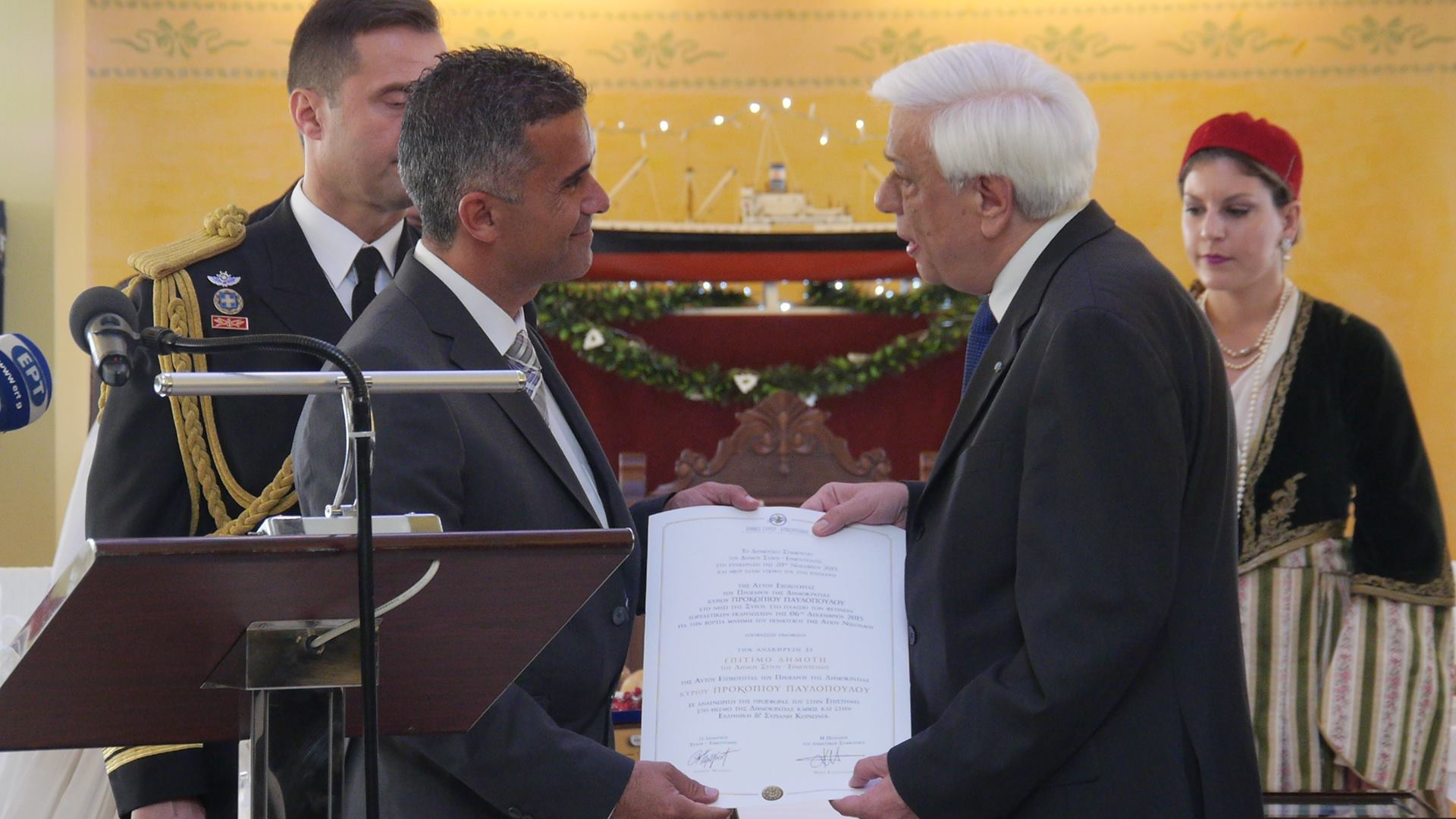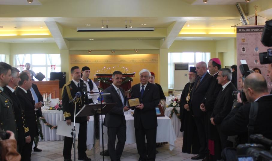 Κατόπιν του χαιρετισμού του κ. Προκόπη Παυλόπουλου, ο οποίος εξέφρασε την ευγνωμοσύνη του για την τιμή προς το πρόσωπό του, την οποία και απεδέχθη όπως υπογράμμισε κατηγορηματικά, μόνον ως τιμή προς τον ίδιο τον θεσμό της Δημοκρατίας, του απονεμήθηκε η τιμητική πλακέτα καθώς και ένας πίνακας ζωγραφικής του εικαστικού, Μιχάλη Μακρουλάκη.