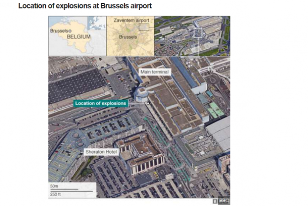 Σύμφωνα με όσα μεταδίδουν τα διεθνή πρακτορεία ειδήσεων, βομβιστής αυτοκτονίας πυροδότησε τις βόμβες κοντά στον χώρο ελέγχου των εισιτηρίων της American Airlines στο αεροδρόμιο, ενώ λίγο αργότερα σημειώθηκε η έκρηξη στον σταθμό Μπάλμεκ του μετρό, ο οποίος βρίσκεται πλησίον του κτιρίου της Κομισιόν, όπου και βάσει όσων μαρτυριών έχουν έρθει στο προσκήνιο, η έκρηξη έγινε μέσα σε βαγόνι.