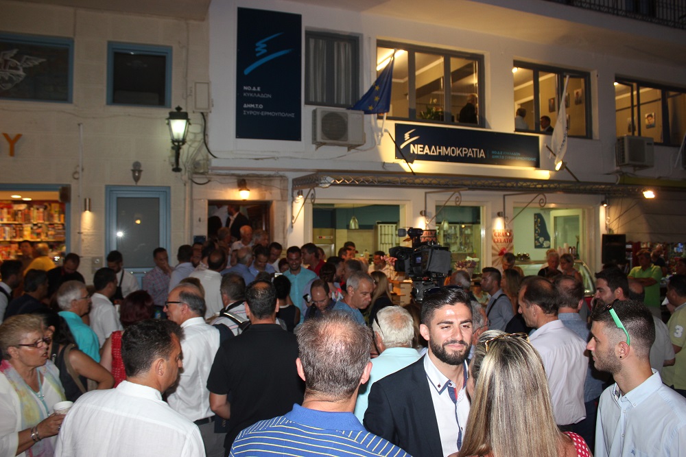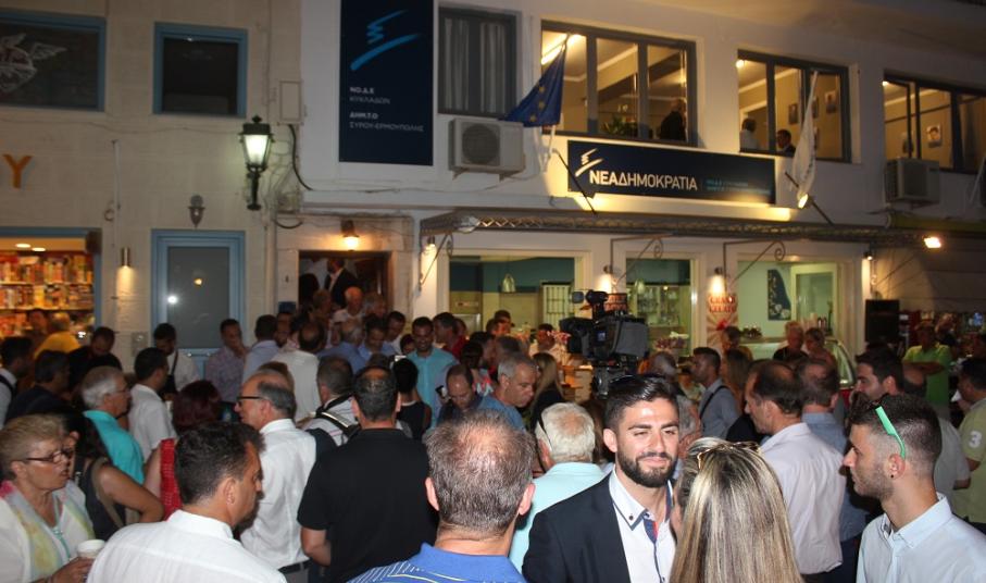 Τη νέα κομματική στέγη της ΝΟΔΕ Κυκλάδων και της Τοπικής Οργάνωσης της Σύρου επισκέφθηκε ο πρόεδρος της Νέας Δημοκρατίας, Κυριάκος Μητσοτάκης κατά τη διάρκεια της διήμερης παραμονής του στην πρωτεύουσα των Κυκλάδων, όπου και αφίχθη το πρωί της Παρασκευής, προκειμένου να παραστεί στην εκδήλωση των εγκαινίων.