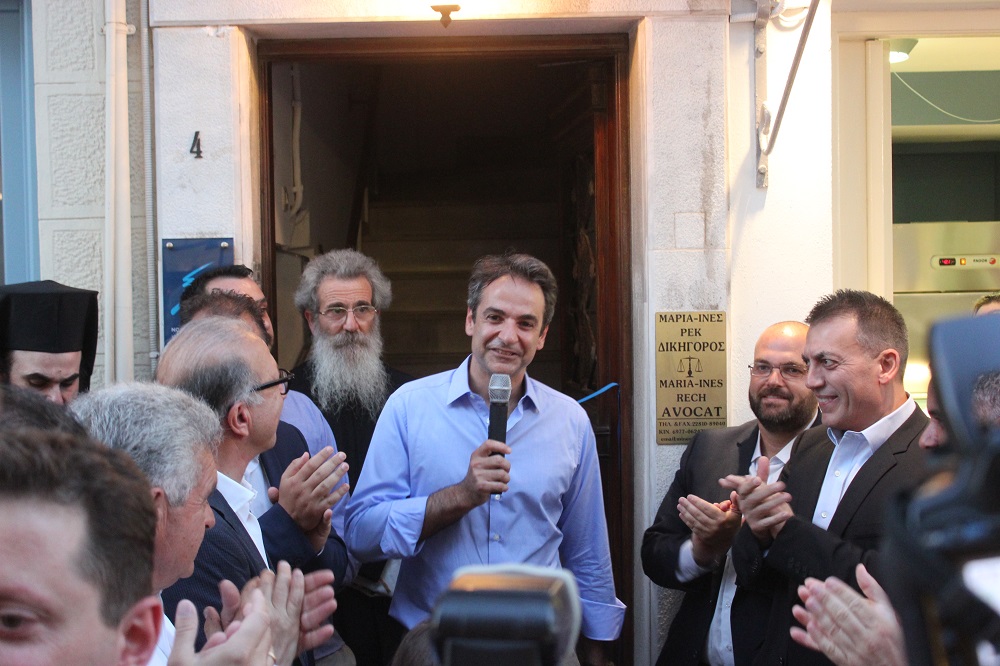 Προτού ολοκληρώσει τον χαιρετισμό του, κάλεσε τα μέλη του κόμματος να εργασθούν συλλογικά για την κατάρτιση του προγράμματος της Νέας Δημοκρατίας, εξηγώντας πως, η παράταξή του, επιλέγει τον δρόμο της ανάπτυξης, αντιλαμβανόμενη “την ευθύνη που έχει, όχι μόνον απέναντι στην Ελλάδα, αλλά κι απέναντι στη Ευρώπη. Έχουμε μία ευθύνη να πολεμήσουμε και να νικήσουμε το τέρας του λαϊκισμού” δήλωσε κατηγορηματικά αποσπώντας το θερμό χειροκρότημα των παρισταμένων. Αμέσως μετά την ξενάγηση του προέδρου της ΝΔ στα γραφεία ακολούθησε λιτό κέρασμα, ενώ προηγήθηκαν οι χαιρετισμοί του βουλευτής της ΝΔ, Γιάννη Βρούτση και του προέδρου της ΝΟΔΕ Κυκλάδων, Κώστα Γαβιώτη.