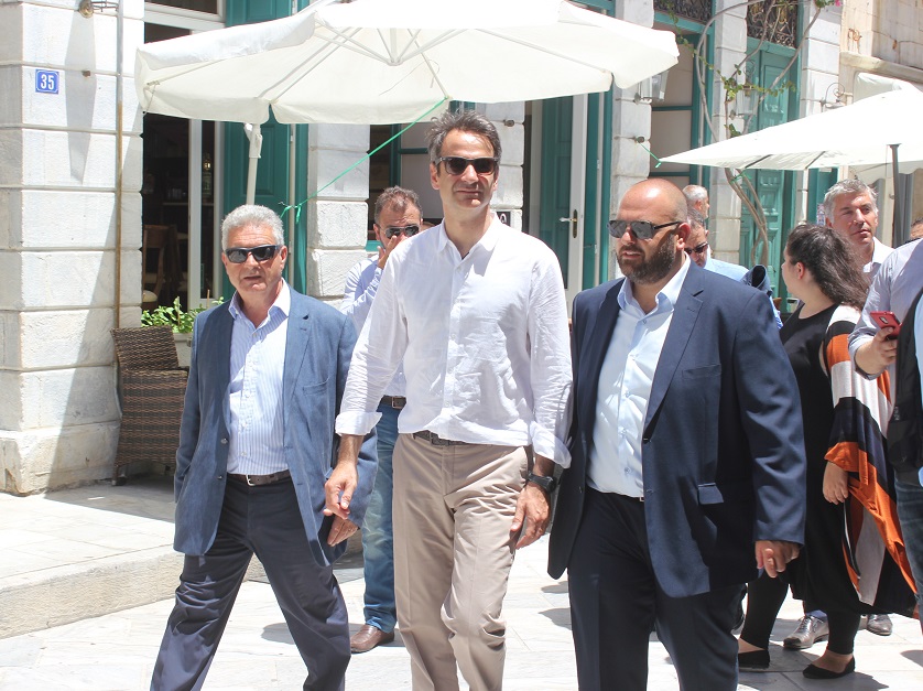 Πλαισιωμένος από κομματικά στελέχη της γαλάζιας παράταξης, τα οποία και του επεφύλαξαν θερμή υποδοχή στο λιμάνι της Ερμούπολης, καθώς επίσης και συνοδευόμενος από τον κοινοβουλευτικό εκπρόσωπο και βουλευτή Κυκλάδων της Νέας Δημοκρατίας, Γιάννη Βρούτση αλλά και τον πρόεδρο της ΝΟΔΕ Κυκλάδων, Κώστα Γαβιώτη πραγματοποίησε με συνέπεια τα προγραμματισμένα ραντεβού του συνομιλώντας με τους τοπικούς άρχοντες και εκπροσώπους φορέων.