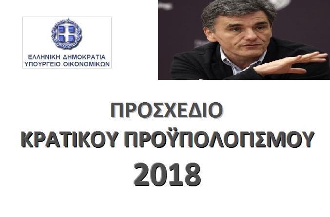 Για το 2018, το πρωτογενές πλεόνασμα προβλέπεται να διαμορφωθεί στο 3,57% του ΑΕΠ, ποσοστό που είναι συμβατό με τους στόχους του προγράμματος δημοσιονομικής προσαρμογής.