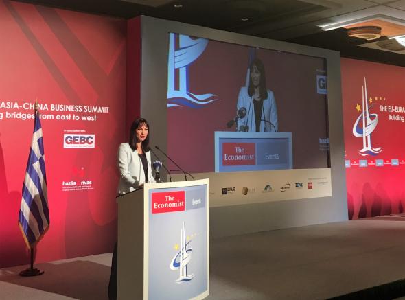 Στις δυνατότητες ενίσχυσης της οικονομικής συνεργασίας ανάμεσα στην Ευρωπαϊκή Ένωση, την Ευρασιατική Οικονομική Ένωση και την Κίνα με γέφυρα τον τουρισμό, αναφέρθηκε η Υπουργός Τουρισμού κα Έλενα Κουντουρά, μιλώντας στο συνέδριο του ECONOMIST που πραγματοποιήθηκε σε συνεργασία με το Ελληνο-Ευρασιατικό Επιχειρηματικό Συμβούλιο “EU-EURASIA-CHINA BUSINESS SUMMIT”.