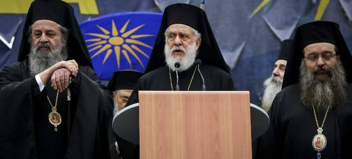 Η Ιερά Σύνοδος της Εκκλησίας της Ελλάδος, ο Πρόεδρός Της, Μακαριώτατος  Αρχιεπίσκοπος Αθηνών και Πάσης Ελλάδος κ. Ιερώνυμος Β΄  και οι Συνοδικοί Ιεράρχες, που εκπροσωπούνται σήμερα εδώ, μετά από ομόφωνη απόφασή τους, από τους Σεβασμιωτάτους Μητροπολίτες Δράμας κ. Παύλο, Χίου κ. Μάρκο και τον ομιλούντα, πλαισιουμένους και από χορεία Σεβασμιωτάτων Μητροπολιτών, αλλά και από κληρικούς και μοναχούς, από όλες τις περιοχές της πατρίδος μας, απευθύνεται σήμερα προς όλους, επισημαίνοντας ότι η Εκκλησία της Ελλάδος, πρωτοπόρος διαχρονικά στους αγώνες του Έθνους, θεωρεί ότι κάθε έκφραση υπερασπίσεως των δικαίων της Μακεδονίας μας είναι επαινετή, αρκεί αυτή να είναι γνήσια, ανιδιοτελής και πηγαία,  πάντα στο πνεύμα μιας νόμιμης και δημοκρατικής εκδήλωσης πέρα και έξω από πολιτικούς και κομματικούς χρωματισμούς!