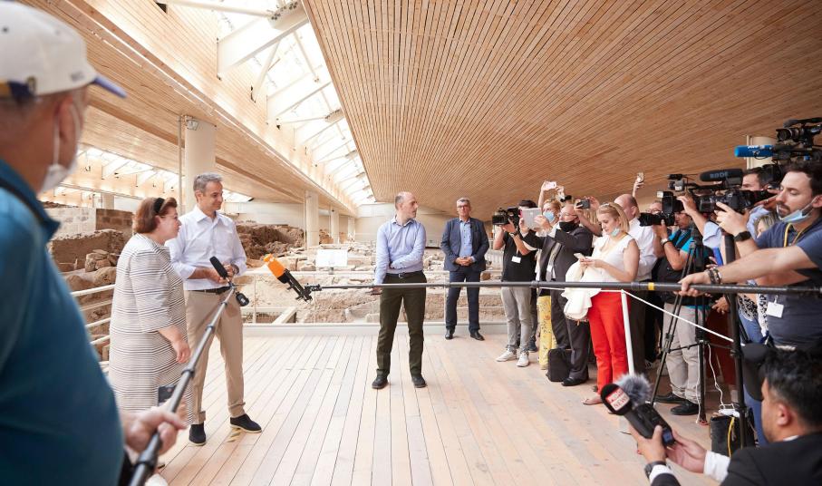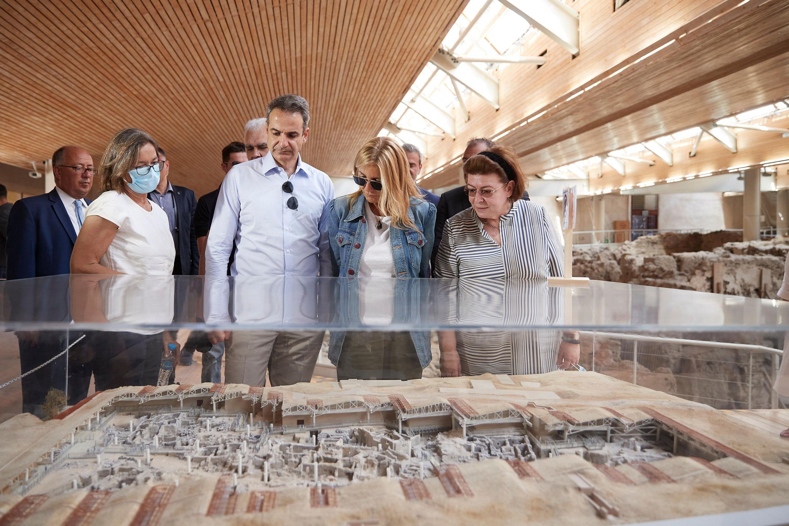 Ειδικότερα, ο Πρωθυπουργός της χώρας έφθασε αεροπορικώς το Σάββατο στο νησί της Σαντορίνης και πλαισιωμένος από Υπουργικό κλιμάκιο μετέβη στον αρχαιολογικό χώρο του Ακρωτηρίου όπου και ξεναγήθηκε, στο Νοσοκομείο Θήρας, ενώ είχε συνάντηση και στη Μητρόπολη με τον Μητροπολίτη κ. Επιφάνιο. Ξεχωριστή συζήτηση είχε με την πλευρά των παραγωγικών φορέων του νησιού, το μεσημέρι της ίδιας ημέρας, με τον Δήμαρχο Θήρας, Αντώνη Σιγάλα και τον Περιφερειάρχη Ν. Αιγαίου, Γιώργο Χατζημάρκο να καλωσορίζουν τον Πρωθυπουργό και να μιλούν για τα νησιά στο πλαίσιο μίας νέας κανονικότητας που “ξημέρωσε” για όλο τον κόσμο εξαιτίας της πανδημίας.