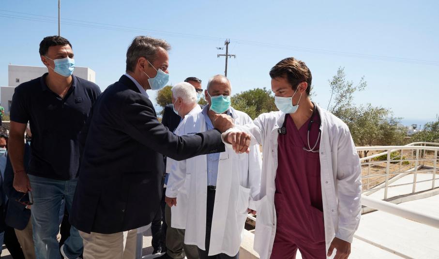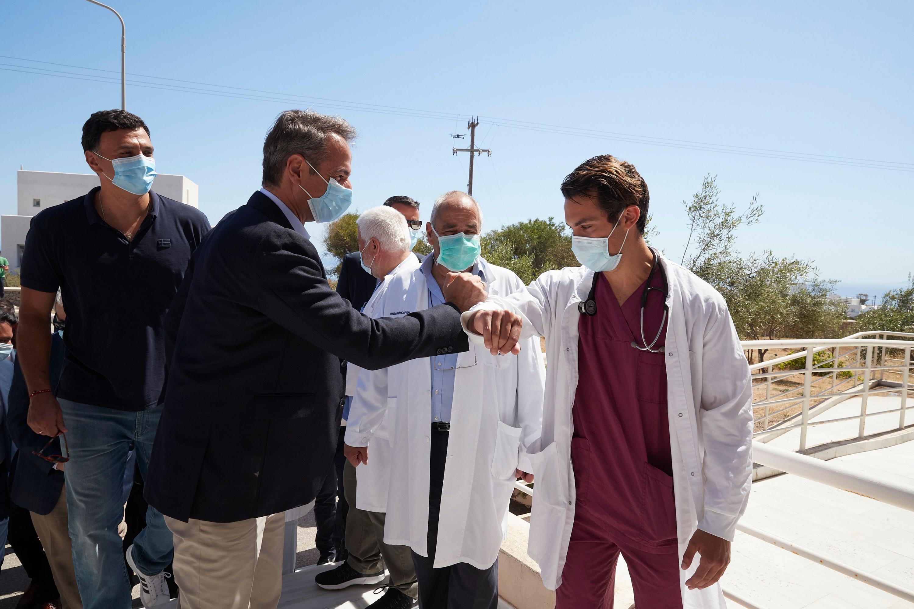 Στο Νοσοκομείο Θήρας τον Κυριάκο Μητσοτάκη υποδέχτηκαν ο Υπουργός Υγείας, Βασίλης Κικίλιας, ο διοικητής του Νοσοκομείου Σαντορίνης, Βασίλης Μαλαματένιος και εργαζόμενοι. Ο Πρωθυπουργός ενημερώθηκε για τις υγειονομικές ανάγκες του νησιού ενώ έγινε ειδική μνεία στην προετοιμασία που έχει γίνει σχετικά με τη διενέργεια διαγνωστικών εξετάσεων για τον κορωνοϊό και την αντιμετώπιση τυχόν κρουσμάτων.