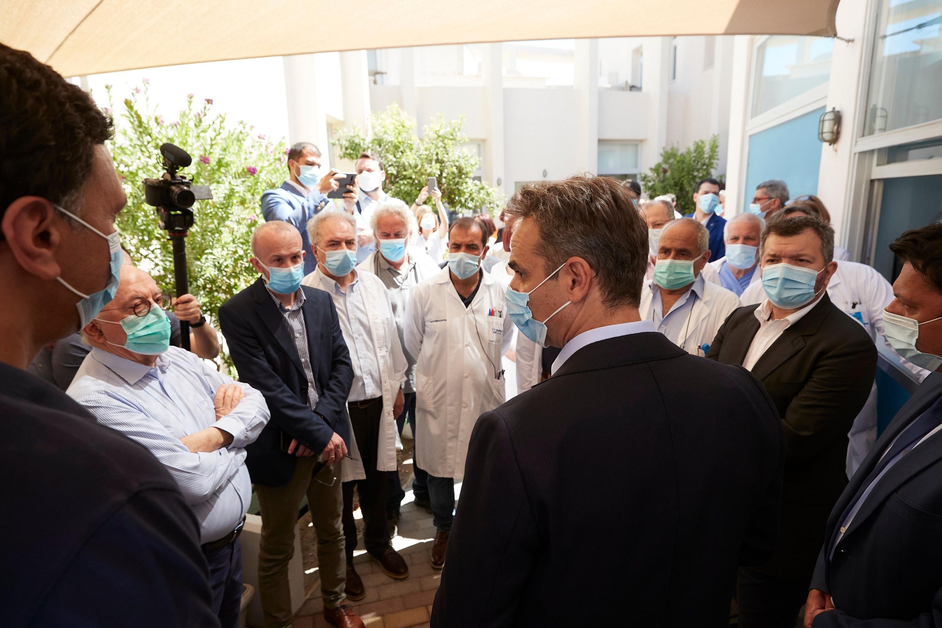Επιπλέον, για την αντιμετώπιση της πανδημίας έχουν τοποθετηθεί στον περιβάλλοντα χώρο του ΓΝΘ ειδικοί οικίσκοι τους οποίους και επισκέφθηκε ο Πρωθυπουργός, ενώ την Παρασκευή παραδόθηκε στη δομή μοριακός αναλυτής για τη διάγνωση της ασθένειας CΟVID-19, προκειμένου να μην απαιτείται αποστολή δειγμάτων στο Ελληνικό Ινστιτούτο Παστέρ. “Νομίζω ότι είναι πάρα πολύ σημαντικό να αντιμετωπίσουμε το άνοιγμα της χώρας με υπευθυνότητα, με σοβαρότητα. Χωρίς πανικό, διότι ποτέ δεν ξέρουμε και ποτέ δεν ξέρετε ένα περιστατικό το οποίο κατά πάσα πιθανότητα μπορεί να είναι μια απλή γαστρεντερίτιδα αλλά θα υπόκειται πάντα στην υποψία ότι μπορεί να είναι κάτι άλλο. Αλλά μιλάω σε ανθρώπους οι οποίοι είναι έμπειροι να χειρίζονται μια τουριστική κίνηση μεγαλύτερη από αυτή που θα έχουμε φέτος εκ των πραγμάτων γιατί δεν θα έχουμε την ίδια τουριστική σεζόν που είχαμε, τουλάχιστον, πέρσι και είμαι σίγουρος ότι όλα θα πάνε εξαιρετικά. Και όταν θα κλείσει ο κύκλος του καλοκαιριού θα μπορούμε να πούμε ότι δεν διαχειριστήκαμε απλά την πρώτη φάση της πανδημίας υποδειγματικά αλλά ότι βάλαμε και τον πήχη πολύ ψηλά στο πως μπορούμε να ανοίξουμε και πάλι τον τουρισμό πάνω απ’ όλα με ασφάλεια”, κατέληξε ο Πρωθυπουργός.