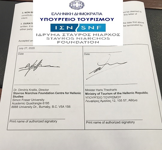 Μνημόνιο συνεργασίας υπέγραψε το Υπουργείο Τουρισμού με το Κέντρο Ελληνικών Σπουδών του Ιδρύματος Σταύρος Νιάρχος, στο Πανεπιστήμιο Simon Fraser της Βρετανικής Κολομβίας, στον Καναδά.