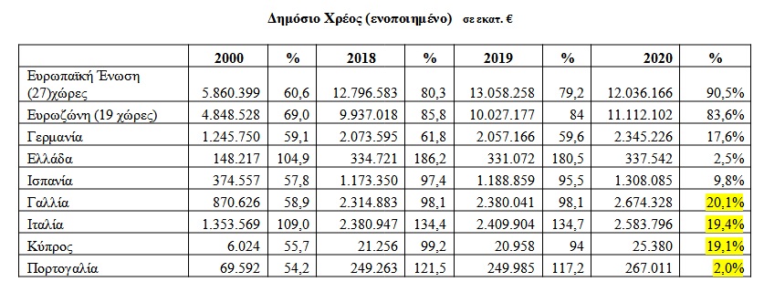 Ο υπολογισμός σε % αφορά σχέση δημόσιου χρέους προς ΑΕΠ