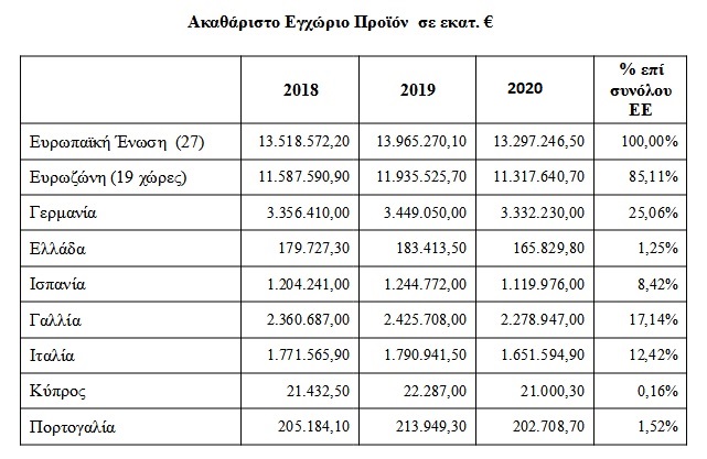 Διαπίστωση 2: το 2020 όμως, το κατά κεφαλήν εισόδημα της χώρας μας είχε υποστεί καθίζηση στα € 15.490, ενώ ο μέσος όρος της ΕΕ των 27, είχε αυξηθεί στα € 29.640. Η χώρα μας τώρα θεωρείται πλουσιότερη στο κατά κεφαλήν εισόδημα μόνο από Βουλγαρία, την Κροατία (€ 12.130), ίση με τη Λετονία (€15.430), Ουγγαρία (€ 13.900), Πολωνία (€ 13.600) και Ρουμανία (€ 11.200),