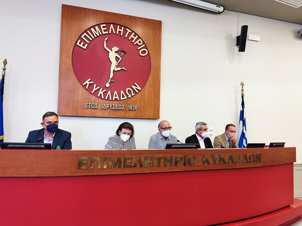 Στη σύσκεψη συμμετείχαν ο Περιφερειάρχης Νοτίου Αιγαίου κ. Γ. Χατζημάρκος, ο Γενικός Γραμματέας του Υπουργείου κ. Γ. Διδασκάλου, ο Χωρικός Αντιπεριφερειάρχης Κυκλάδων κ. Γ. Λεονταρίτης, ο Βουλευτής Κυκλάδων κ. Φίλιππος Φόρτωμας και ο Αντιπεριφερειάρχης Μεταφορών κι Επικοινωνιών Κυκλάδων κ. Μ. Δαδάος.