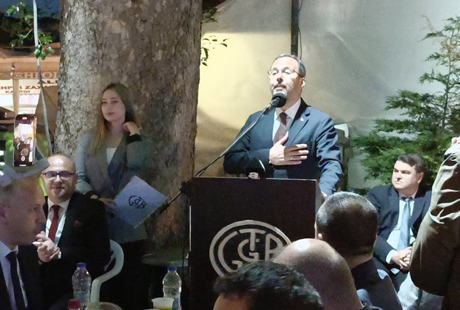 Ο Σεντάτ Χασάν, πρόεδρος της αυτοαποκαλούμενης «Τουρκικής Νεολαίας Κομοτηνής» τον υποδέχθηκε στο ιφτάρ, το βράδυ της Τρίτης 26/04, στην αυλή του κτιρίου, ενώ λόγο απεύθυνε ο ίδιος, ο ψευτομουφτής Κομοτηνής Ιμπραήμ Σερίφ, ο Τούρκος πολιτικός Μεβλούτ Τσαβούσογλου και ο υπουργός.