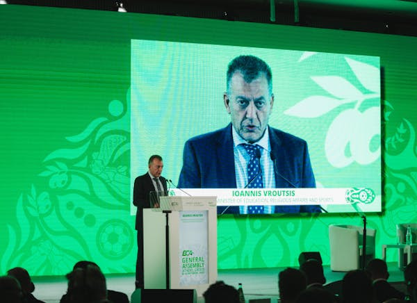 Στη σκιά του αδόκητου χαμού του διεθνή μας ποδοσφαιριστή, Τζόρτζ Μπάλντοκ, για τον οποίο –όπως και για όλους τους ανθρώπους του ποδοσφαίρου που χάθηκαν στο 2024- κρατήθηκε ενός λεπτού σιγή, ο αναπληρωτής Υπουργός Αθλητισμού, Γιάννης Βρούτσης, απηύθυνε χαιρετισμό στην 31η Γενική Συνέλευση της Ευρωπαϊκής Ένωσης Επαγγελματικών Ομάδων Ποδοσφαίρου (ECA), που ολοκληρώνεται σήμερα στην Αθήνα.