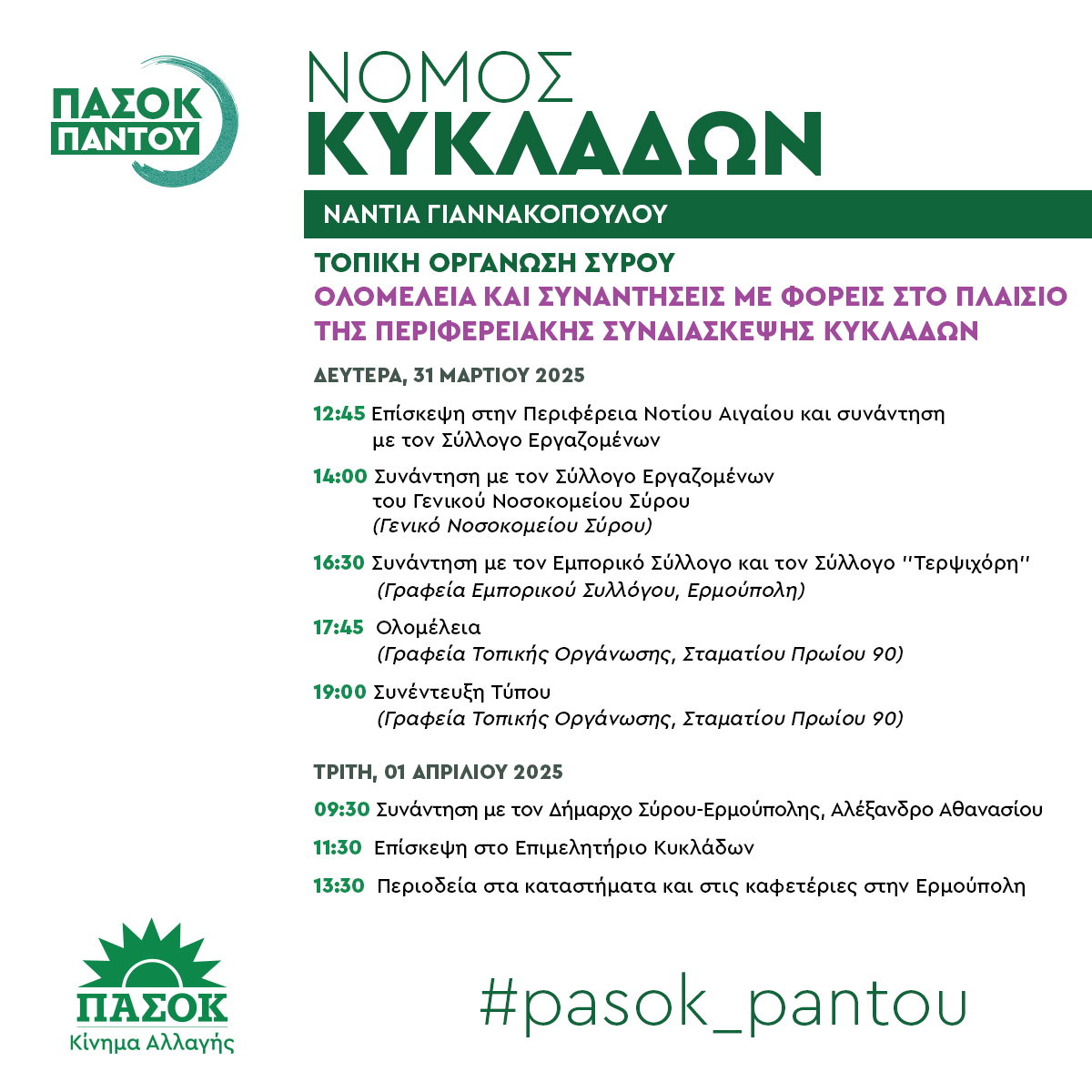 Περιοδεία κλιμακίου που θα πραγματοποιηθεί την Δευτέρα 31.03.2025 στο νησί της Σύρου, στο πλαίσιο της Περιφερειακής Συνδιάσκεψης.