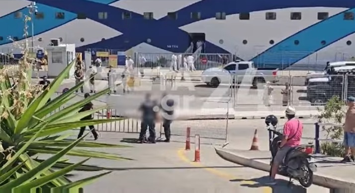 Το κρουαζιερόπλοιο συνοδεύεται από σκάφη του λιμενικού, καθώς παραμένουν σε ισχύ μέτρα για την ομαλή αποβίβαση των τουριστών.