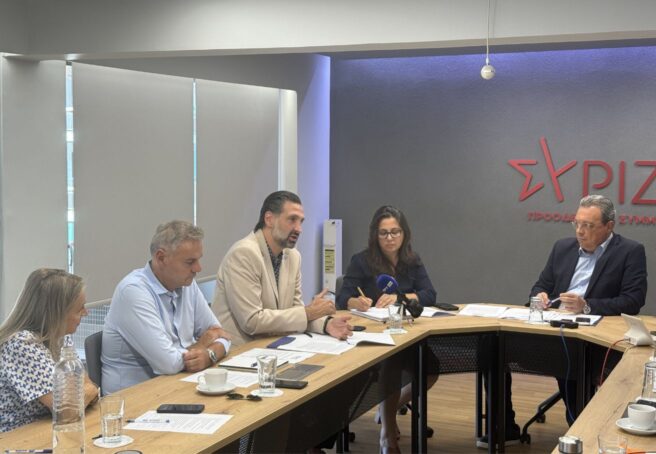 Με τον πρόεδρο του ΣΥΡΙΖΑ-ΠΣ, Σωκράτη Φάμελλο, συναντήθηκε η Ελληνική Συνομοσπονδία Εμπορίου και Επιχειρηματικότητας, με ατζέντα συζήτησης «τα μεγάλα θέματα που απασχολούν το ελληνικό εμπόριο, στη βάση του αναλυτικού και τεκμηριωμένου Υπομνήματος που έχει καταθέσει η ΕΣΕΕ στην κυβέρνηση και τα πολιτικά κόμματα ενόψει της Διεθνούς Έκθεσης Θεσσαλονίκης», όπως επισημαίνει η Συνομοσπονδία σε ανακοίνωσή της.