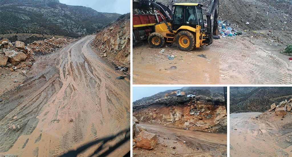 Με “δεμένα” χέρια είναι οι οδηγοί και τα πληρώματα των απορριμματοφόρων όσον αφορά στη μεταφορά των σκουπιδιών μέσα στον ΧΥΤΑ Σύρου, καθώς ένα τμήμα του δρόμου προς υψηλότερο επίπεδο του κυττάρου παραμένει χωματόδρομος, με αποτέλεσμα να μετατρέπεται σε... λάσπη, σε ημέρες με συνεχή βροχόπτωση και να υπάρχει σοβαρή επικινδυνότητα.