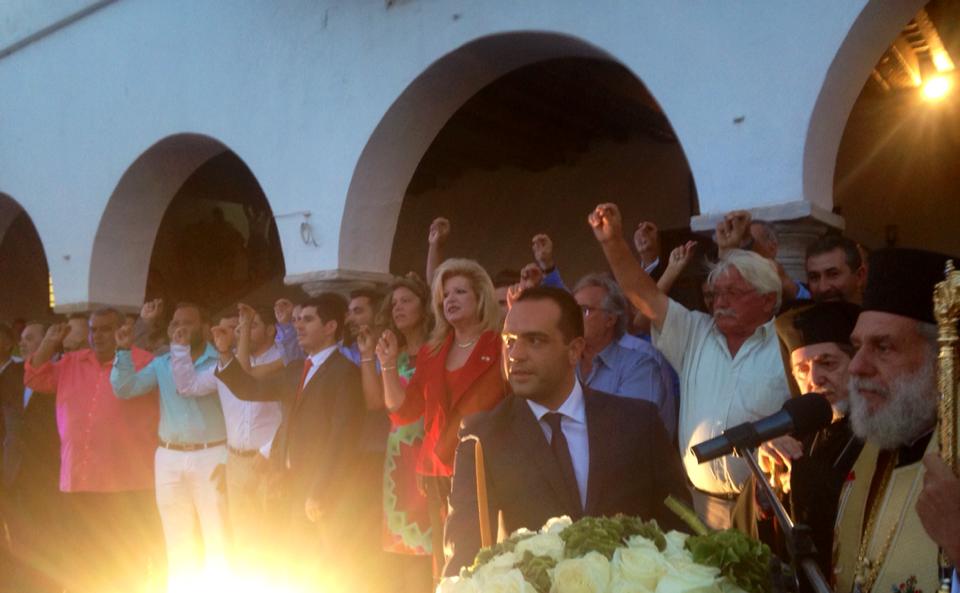 Παρουσία εκπροσώπων της νέας Περιφερειακής Αρχής καθώς και της Αποκεντρωμένης Διοίκησης Αιγαίου αλλά και του Σεβασμιωτάτου Μητροπολίτη Σύρου κ. Δωροθέου Β΄ καθώς και πλήθους εκπροσώπων φορέων, δήλωσε “Σήμερα όπως όλοι βλέπετε φυσάει άνεμος αλλαγής στο “Νησί των Ανέμων”. Η ανάληψη των καθηκόντων της νέας Δημοτικής Αρχής, σηματοδοτεί την έναρξη της νέας προσπάθειας, συμβολίζει μία πραγματικά νέα αρχή” προσθέτοντας πως, “Για μένα προσωπικά αυτή η νέα αρχή, σημαίνει πολλή δουλειά, πολλή προσπάθεια και μεγάλη ευθύνη”.