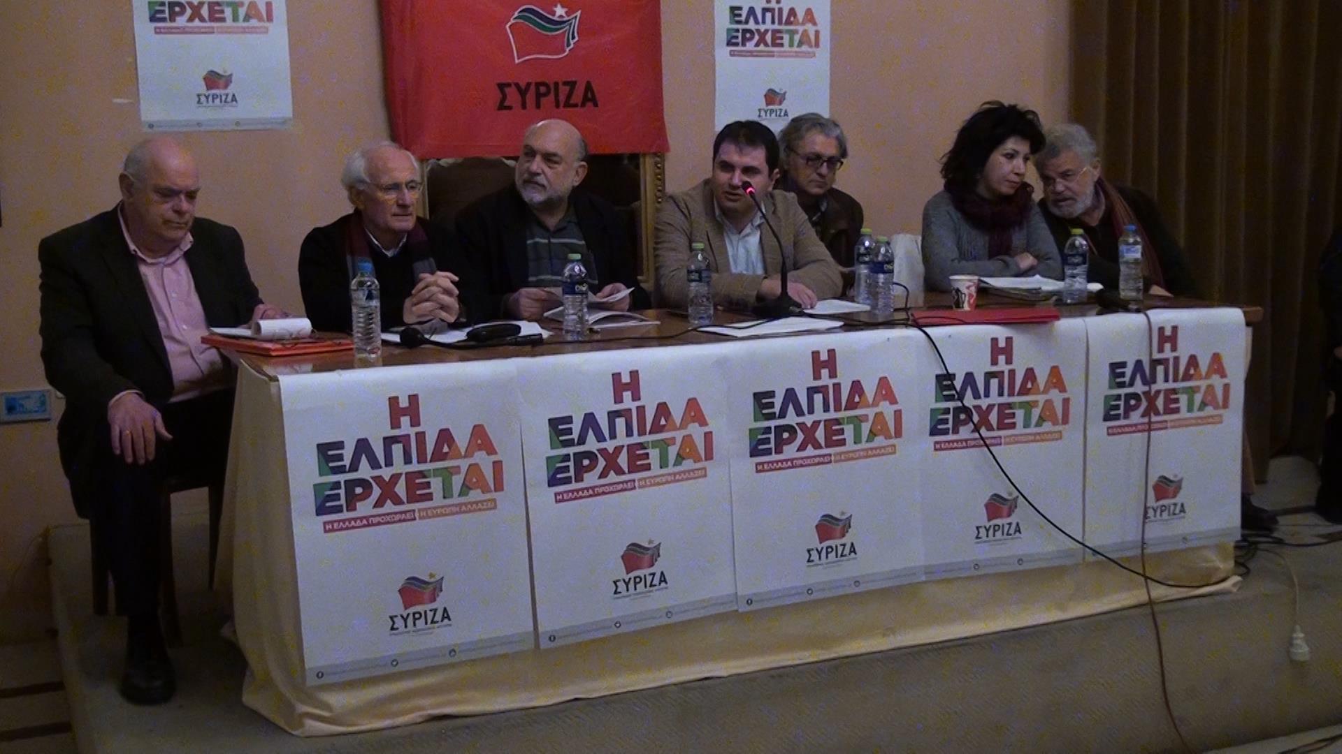 Κεντρικός ομιλητής ήταν ο Γραμματέας του ΣΥΡΙΖΑ Δημήτρης Βίτσας, ενώ συμμετείχαν επίσης οι υποψήφιοι βουλευτές του κόμματος στις Κυκλάδες, Νίκος Συρμαλένιος, ΄Άννα Μαυρουδή, Νίκος Μανιός,. Αντώνης Συρίγος, Δημήτρης Πολιτόπουλος και Ηλίας Γορδούκης.