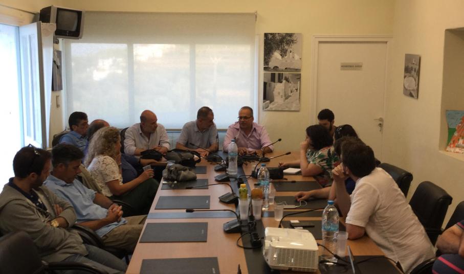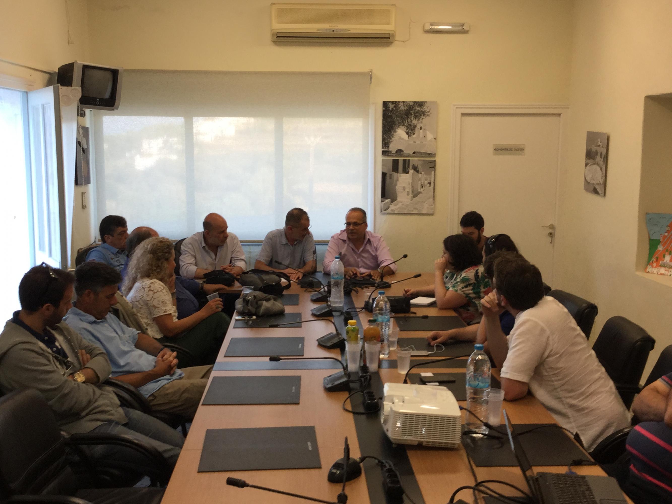 Η ομάδα ξεναγήθηκε στο νησί και αργότερα συναντήθηκε με το Δήμαρχο Σίφνου κ. Ανδρέα Μπαμπούνη, στελέχη του Δήμου και μέλη της Συνεταιριστικής Εταιρίας. Στη συνάντηση αυτή, οι ευρωβουλευτές ανέλυσαν την εμπειρία τους από το ισπανικό νησί El Hierro, ένα νησί του συμπλέγματος των Καναρίων νήσων που έχει πετύχει 100% ενεργειακή αυτονομία με τη χρήση ΑΠΕ παρότι ανήκει, όπως και η Σίφνος, στα μη διασυνδεδεμένα με το κεντρικό δίκτυο νησιά. Το έργο σχεδιάστηκε από το Τεχνολογικό Ινστιτούτο των Καναρίων Νήσων (ITC) και υλοποιήθηκε σε συνεργασία με την κεντρική Ισπανική κυβέρνηση, το Δήμο του El Hierro και την UNELCO SA (εταιρία παραγωγής και διάθεσης ηλεκτρικής ενέργειας). Οι Ισπανοί ευρωβουλευτές δεσμεύτηκαν να φέρουν σε επαφή το Δήμο και τη ΣΕΣ με το Τεχνολογικό Ινστιτούτο των Καναρίων Νήσων (ITC). Στη συζήτηση που ακολούθησε αναφέρθηκαν τα κοινά δεδομένα αλλά και οι διαφορές με το παράδειγμα του Ισπανικού νησιού και δόθηκε η αμοιβαία διαβεβαίωση και πρόθεση και των δύο πλευρών για συνέχεια στην επικοινωνία και η ανταλλαγή εμπειριών.