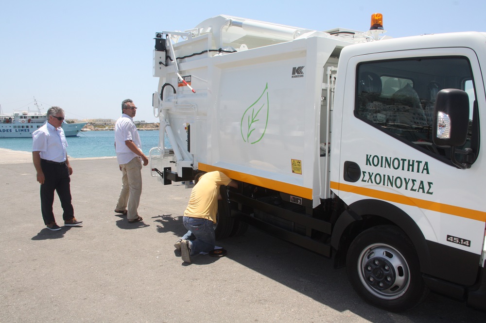 Ο Δήμος Νάξου και Μικρών Κυκλάδων εκφράζει τις θερμότατες ευχαριστίες του προς τον κ. Μαρτίνο, για τη σημαντική αυτή προσφορά προς τον Δήμο και τους κατοίκους της Σχοινούσας, καθώς με το απορριμματοφόρο αυτό ενισχύεται ακόμα περισσότερο ο μηχανολογικός «στόλος» του νησιού και κατ΄ επέκταση του Δήμου στην κάλυψη των αναγκών αποκομιδής απορριμμάτων.