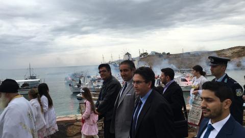 Ο Δήμαρχος Νάξου και Μικρών Κυκλάδων Μανόλης Μαργαρίτης επισκέφθηκε τη Δευτέρα 2 Μαΐου το Κουφονήσι και παρέστη στις θρησκευτικές εκδηλώσεις για τον εορτασμό του Πολιούχου του νησιού Αγίου Γεωργίου. Συνοδευόμενος από τον Αντιδήμαρχο του Κουφονησιού Παναγιώτη Φωστιέρη και τον Πρόεδρο Αντώνη Κωβαίο, ο Δήμαρχος παρέστη στη Θεία Λειτουργία και ακολούθησε στη λιτάνευση της Εικόνας του Αγίου Γεωργίου σε κλίμα κατάνυξης, μαζί με πλήθος πιστών που συμμετείχαν στις θρησκευτικές εκδηλώσεις. Μετά την περιφορά της Ιερής Εικόνας, ο Μανόλης Μαργαρίτης παραβρέθηκε στο γεύμα που παρατέθηκε στην εκκλησία του Αγίου Γεωργίου. Κατά την παραμονή του στο νησί, ο Δήμαρχος είχε την ευκαιρία να συνομιλήσει με πλήθος πιστών και μόνιμων κατοίκων του νησιού.