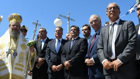 Την κυβέρνηση εκπροσώπησε ο υπουργός Εθνικής Άμυνας Πάνος Καμμένος ο οποίος συνοδευόταν από τον αρχηγό ΓΕΝ Αντιναύαρχο Γεώργιο Γιακουμάκη, ενώ παρέστησαν ο πρόεδρος της Ένωσης Κεντρώων Βασίλης Λεβέντης και εκπρόσωποι της αντιπολίτευσης και των τοπικών Αρχών, καθώς και ο αρχηγός του Λιμενικού Σώματος αντιναύαρχος Σταμάτιος Ράπτης.