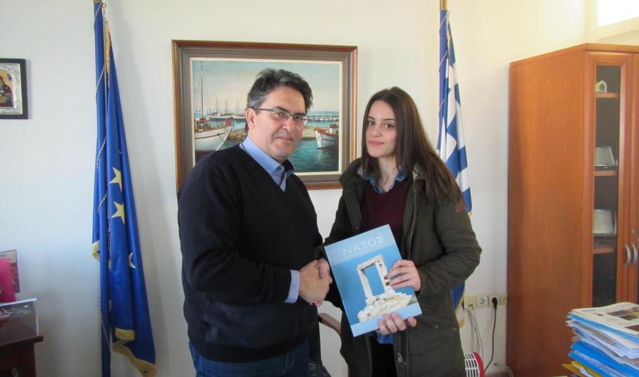 Ο Δήμαρχος Νάξου και Μικρών Κυκλάδων Μανόλης Μαργαρίτης προσκάλεσε και δέχθηκε στο γραφείο του την Τρίτη, 3 Ιανουαρίου,  την Γεωργία Γρυλάκη, τη φοιτήτρια που πρώτευσε στις Πανελλήνιες εξετάσεις της σχολικής περιόδου 2015-2016, συγκεντρώνοντας την υψηλότερη βαθμολογία σε όλο το Νότιο Αιγαίο.