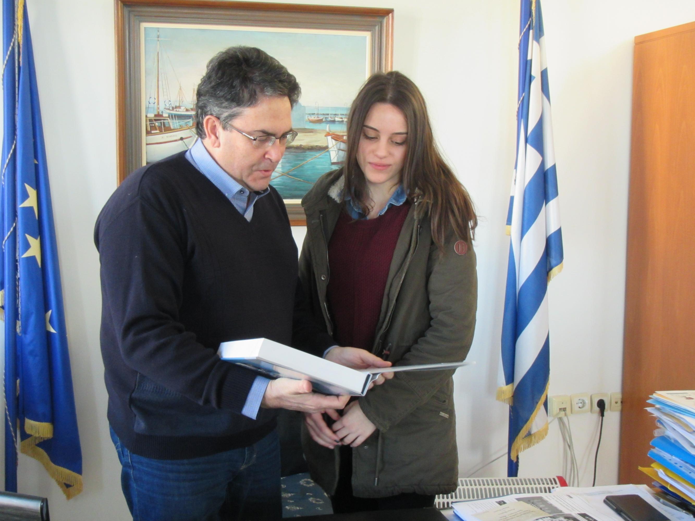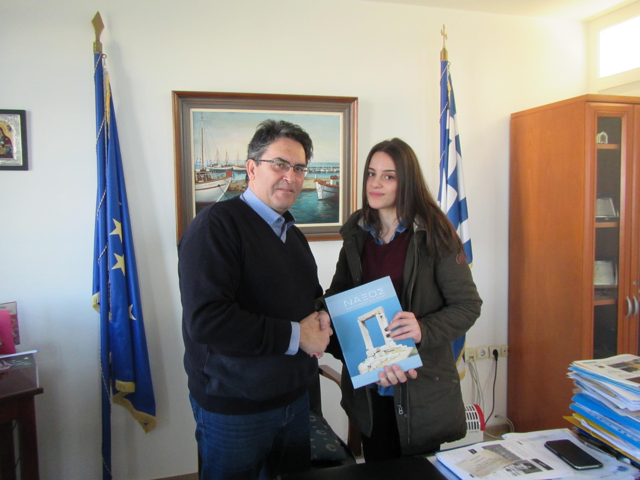 Ο Δήμαρχος ευχαρίστησε εκ μέρους όλων των Ναξίων τη νεαρή φοιτήτρια για τη σπουδαία διάκριση και πρωτιά που χάρισε στην ιδιαίτερη πατρίδα της και ευχήθηκε καλή πρόοδο, καλή σταδιοδρομία και πάντα ανάλογες επιτυχίες και διακρίσεις στη ζωή της. Ταυτόχρονα, ως επιβράβευση της προσπάθειας της, τής απένειμε το βιβλίο «Αρμενίζοντας στο χρόνο».
