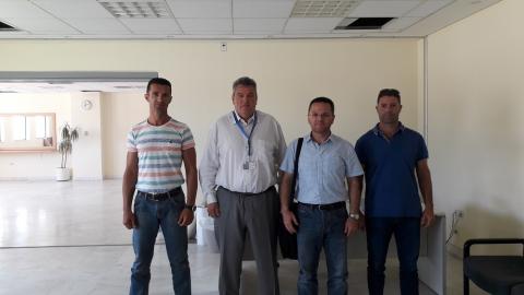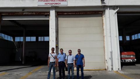 Πραγματοποιήθηκε τη Δευτέρα 15 Μαΐου επίσκεψη μελών του Δ.Σ. της Ένωσης Υπαλλήλων Πυροσβεστικού Σώματος Ν. Αιγαίου στη νήσο Μύκονο και συγκεκριμένα στο Αεροδρόμιο και στο Δημαρχείο του νησιού. Σκοπός του ταξιδιού αυτού ήταν η επίσκεψη στη νεοσύστατη Πυροσβεστική Υπηρεσία του διεθνούς Αερολιμένα Μυκόνου, η διαχείριση του οποίου παραχωρήθηκε πρόσφατα στην εταιρεία “FRAPORT”, προκειμένου να διαπιστώσουμε από κοντά αν έχουν βελτιωθεί οι συνθήκες εργασίας - διαβίωσης των συναδέλφων και να συζητηθούν τα προβλήματα που έχουν προκύψει από την έναρξη λειτουργίας της συγκεκριμένης Υπηρεσίας.