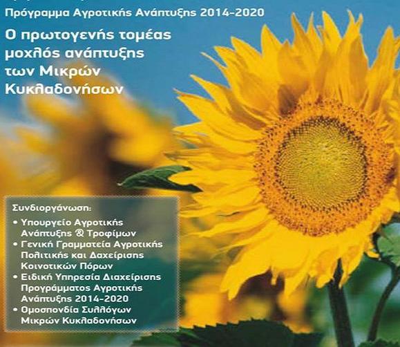 Ημερίδα συνδιοργάνωσε στην Αθήνα, στην αίθουσα της Ειδικής Υπηρεσίας Διαχείρισης Προγράμματος Αγροτικής Ανάπτυξης 2014 – 2020, το Υπουργείο Αγροτικής Ανάπτυξης και Τροφίμων και η Ομοσπονδία Συλλόγων Μικρών Κυκλαδονήσων (Ο.ΣΥ.ΜΙ.Κ.), με θέμα «Ο πρωτογενής τομέας μοχλός ανάπτυξης των Μικρών Κυκλαδονήσων».