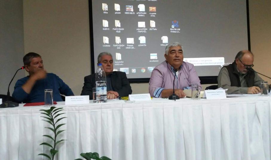 Το Σάββατο 04/11/2017 πραγματοποιήθηκε η μεγάλη σύσκεψη που διοργάνωσε ο Σύνδεσμος Επαγγελματιών και Βιοτεχνών Μήλου σε συνεργασία με τη Γενική Γραμματεία Υπουργείο Εσωτερικών Διαχείρισης και Αποβλήτων, σχετικά με το μείζον θέμα του αποχετευτικού και βιολογικού του νησιού. Παρουσία της δημοτικής αρχής και των παραγωγικών φορέων του νησιού, ο Γ. Γραμματέας του Υπουργείου για θέματα Περιβάλλοντος κ. Καπετάνιος και ο συμμετέχων στο Δ.Σ. του Οργανισμού Ανακύκλωσης κ. Μπιλίνης, ενημέρωσαν για την υπάρχουσα κατάσταση, με τον κ. Καπετάνιο να δηλώνει: “Δεν μπορώ και δεν πρόκειται να σας υποσχεθώ ότι το καλοκαίρι του 2018 θα έχετε ολοκληρωμένο σύστημα βιολογικού” .