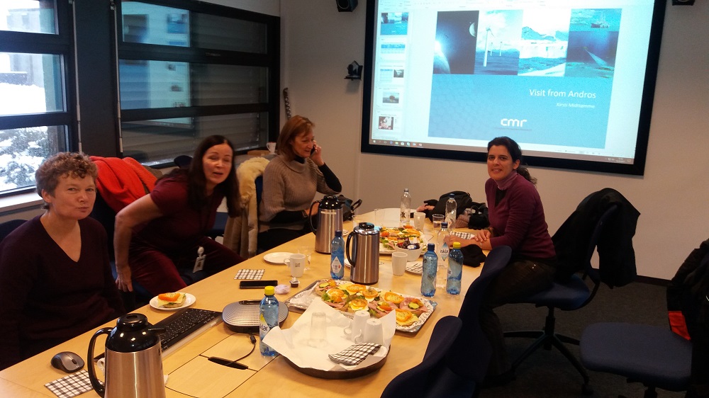 Τον Δήμο Άνδρου εκπροσώπησαν η πρόεδρος του Ν.Π.Δ.Δ. κυρία Αθηνά Τσατσομοίρου και η υπεύθυνη στην Τεχνική Υπηρεσία του Δήμου, κυρία Ειρήνη Παρλιάρου. Τις εκπροσώπους του Δήμου μας υποδέχτηκε στο Bergen η υπεύθυνη επιστήμονας της CMR κυρία Cirsti Midtomme, η οποία αρχικά, τις ξενάγησε στα γραφεία της εταιρείας που συνεργάζεται με το Κέντρο Ανανεώσιμων Πηγών Ενέργειας (ΚΑΠΕ) και τις Δότριες χώρες, στο πλαίσιο του προγράμματος. Η CMR, μεταξύ άλλων, συνεργάζεται και με τη NASA για την καλλιέργεια φυτών στο διάστημα. Να σημειωθεί δε, ότι η εν λόγω εταιρεία εξέδωσε δελτίο Τύπου για την επίσκεψη των εκπροσώπων του Δήμου Άνδρου.