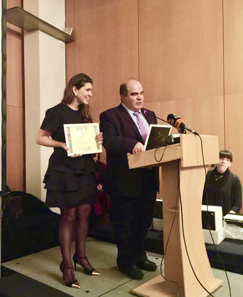 Το βραβείο στην κατάμεστη αίθουσα εκδηλώσεων παρέλαβε η Αναπληρώτρια Πρόεδρος της Δημοτικής Κοινότητας Μυκονίων, κ. Μαρία Κουσαθανά.