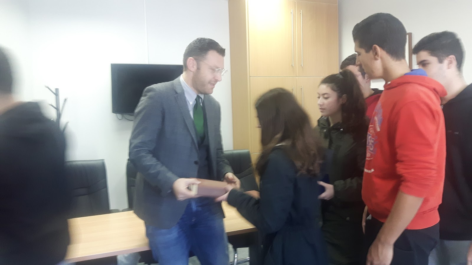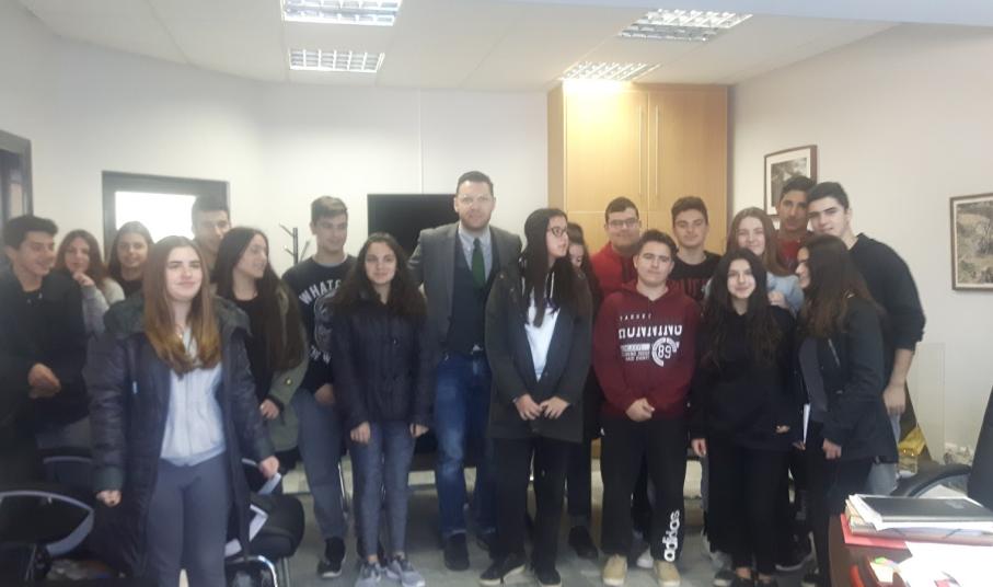 Μια ξεχωριστή επίσκεψη δέχτηκε ο Δήμαρχος Τήνου κ. Γιάννης Σιώτος, την Παρασκευή 12 Ιανουαρίου 2018 από τους μαθητές του 2ου Τμήματος της Α' τάξης του Γενικού Λυκείου Τήνου.