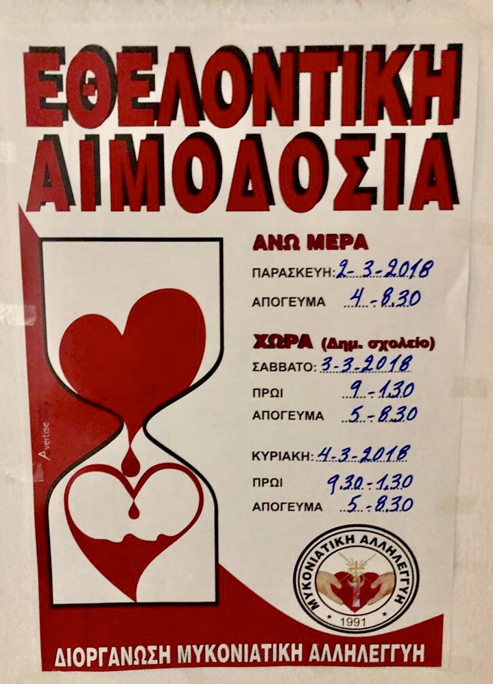 Ο Δήμαρχος Μυκόνου κ. Κωνσταντίνος Κουκάς απευθύνει κάλεσμα συμμετοχής προς όλους τους κατοίκους του νησιού, στην Εθελοντική Αιμοδοσία που διοργανώνει η Μυκονιάτικη Αλληλεγγύη τόσο στην Άνω Μερά όσο και στη Χώρα της Μυκόνου.