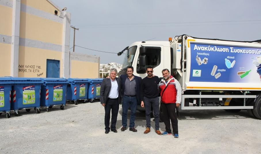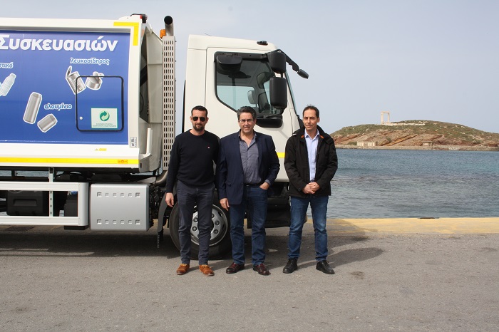 Στο πλαίσιο του επανασχεδιασμού της λειτουργίας της ανακύκλωσης, ο Δήμος Νάξου και Μικρών Κυκλάδων παρέλαβε σήμερα ένα καινούριο όχημα αποκομιδής ανακυκλώσιμων υλικών. Το νέο απορριμματοφόρο, όπως κι οι 300 μπλε κάδοι ανακύκλωσης, οι οποίοι έχουν ήδη παραληφθεί, είναι δωρεά της Ελληνικής Εταιρείας Αξιοποίησης Ανακύκλωσης, με την οποία έχει συμβληθεί ο Δήμος με στόχο την επανέναρξη και λειτουργία της ανακύκλωσης.