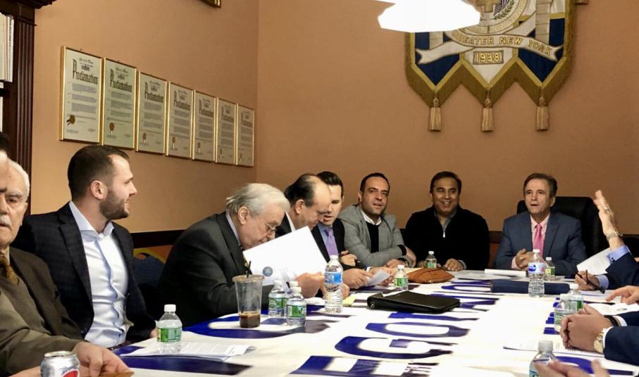 Τον Δήμαρχο και τον Πρόεδρο του Δημοτικού Συμβουλίου Μυκόνου υποδέχθηκαν σε θερμό κλίμα οι Πρόεδροι των Σωματείων Ελλήνων Ομογενών στο Σταθάκειο Μέγαρο, «το σπίτι της ομογένειας» και έδρα της Ομοσπονδίας του Ελληνικού Σωματείου Μείζονος Ν. Υόρκης.