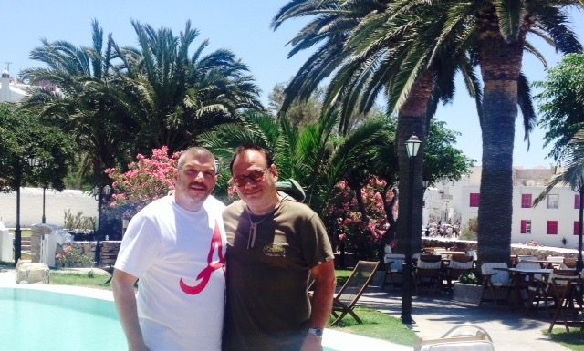 Στη φωτογραφία ο συντάκτης του αφιερώματος σε πρόσφατη επίσκεψή του στη Μύκονο με τον Κώστα Σκαγιά αντιπρόσωπο Αιγαίου της MTC GROUP.
