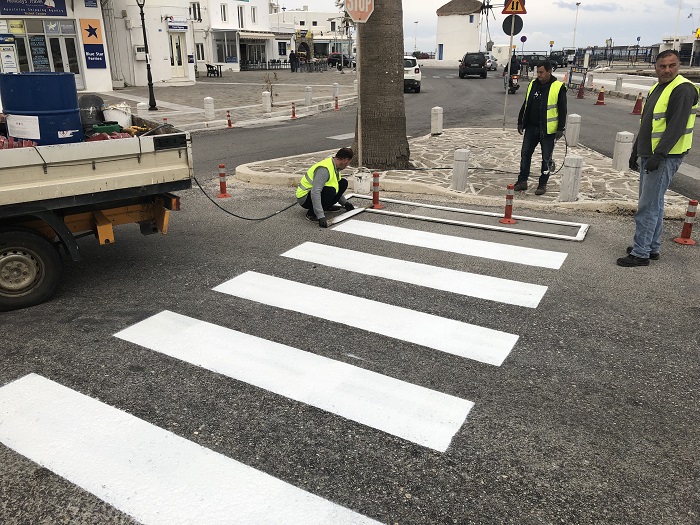 Σε εξέλιξη βρίσκεται το έργο των διαγραμμίσεων των διαβάσεων πεζών σε διάφορα σημεία του Δήμου Πάρου με προτεραιότητα στις εισόδους των σχολικών μονάδων και σε δρόμους με αυξημένη κίνηση. Στόχος είναι οι εργασίες να ολοκληρωθούν πριν από την εορταστική περίοδο του Πάσχα, όπου παρουσιάζεται σημαντική αύξηση της τουριστικής κίνησης και του κυκλοφοριακού φόρτου στο οδικό δίκτυο.
