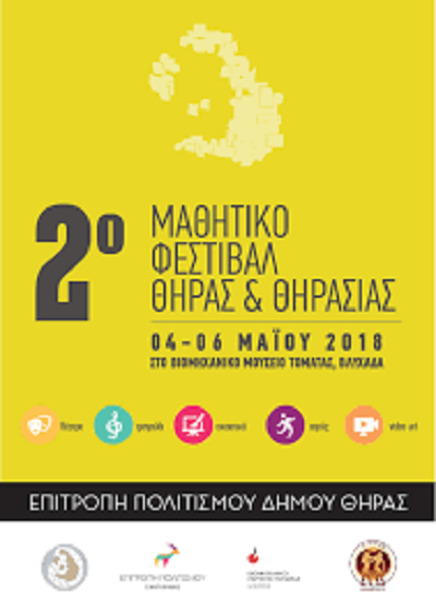 Στην τελική ευθεία της προετοιμασίας έχει μπει το 2ο Μαθητικό Φεστιβάλ Θήρας και Θηρασίας που διοργανώνει ο Δήμος Θήρας, η Επιτροπή Πολιτισμού και το ΔΑΠΠΟΣ σε συνεργασία με την Πρωτοβάθμια και Δευτεροβάθμια Εκπαίδευση και το Εργοστάσιο Τεχνών Σαντορίνης (SAF).