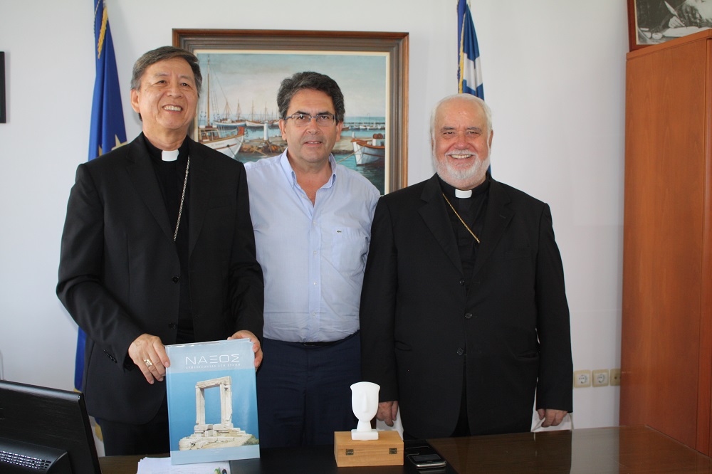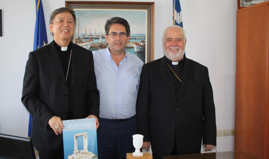 Τον Δήμαρχο Νάξου και Μικρών Κυκλάδων Μανόλη Μαργαρίτη επισκέφθηκε ο Αποστολικός Νούντσιος στην Ελλάδα, Σεβασμιότατος Αρχιεπίσκοπος π. Savio Hon Tai Fai, συνοδευόμενος από τον Αρχιεπίσκοπο Νάξου-Τήνου-Άνδρου-Μυκόνου, π. Νικόλαο Πρίντεζη, τον εφημέριο Νάξου και Πάρου π. Γεώργιο Παλαμάρη και τον εφημέριο της Ποιμαντικής Ενότητας Στενής Τήνου, π. Ιωάννη Σκλάβο.