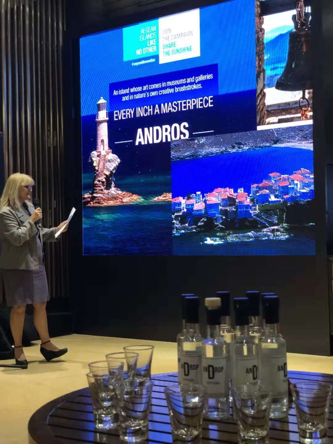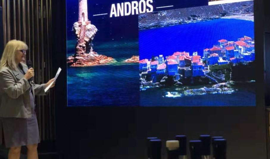 Η παρουσίαση των δύο νησιών, που πραγματοποιήθηκε την πρώτη ημέρα του Φεστιβάλ στο ξενοδοχείο Intercontinental Kunming, ξεκίνησε με τη συνέντευξη Τύπου στα τοπικά Media και Social Media της πόλης Kunming και σε εκπροσώπους τουριστικών γραφείων και εισαγωγείς. Την παρουσίαση των Κυκλάδων, και ειδικά της Άνδρου και της Μυκόνου, έκανε ο Γενικός Πρόξενος της Ελλάδος στην Guangzhou κ. Γρηγόρης Τασσιόπουλος, ο οποίος έδειξε τα τοπία, την ιστορία, τις τουριστικές εμπειρίες της Άνδρου και της Μυκόνου και συνέχισε η Σύμβουλος Ανάπτυξης Νέων Αγορών και διοργανώτρια της εκδήλωσης κα Μαρία Ζησούλη, παρουσιάζοντας τον πολιτισμό και τα προϊόντα τους.