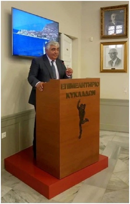 Χαιρετισμούς απεύθυναν ο φιλοξενών Δήμαρχος Σύρου κ. Γεώργιος Μαραγκός, ο Πρόεδρος της ΠΕΔ Ν. Αιγαίου κ. Φώτης Χατζηδιάκος, ο Περιφερειάρχης Νοτίου Αιγαίου κ. Γιώργος Χατζημάρκος, ο Πρόεδρος του Επιμελητηρίου Κυκλάδων ο κ. Γιάννης Ρούσσος. Τον Πρόεδρο της ΚΕΔΕ κ. Γιώργο Πατούλη εκπροσώπησε ο Δήμαρχος Μήλου Γεράσιμος Δαμουλάκης, μεταφέροντας τον χαιρετισμό του.