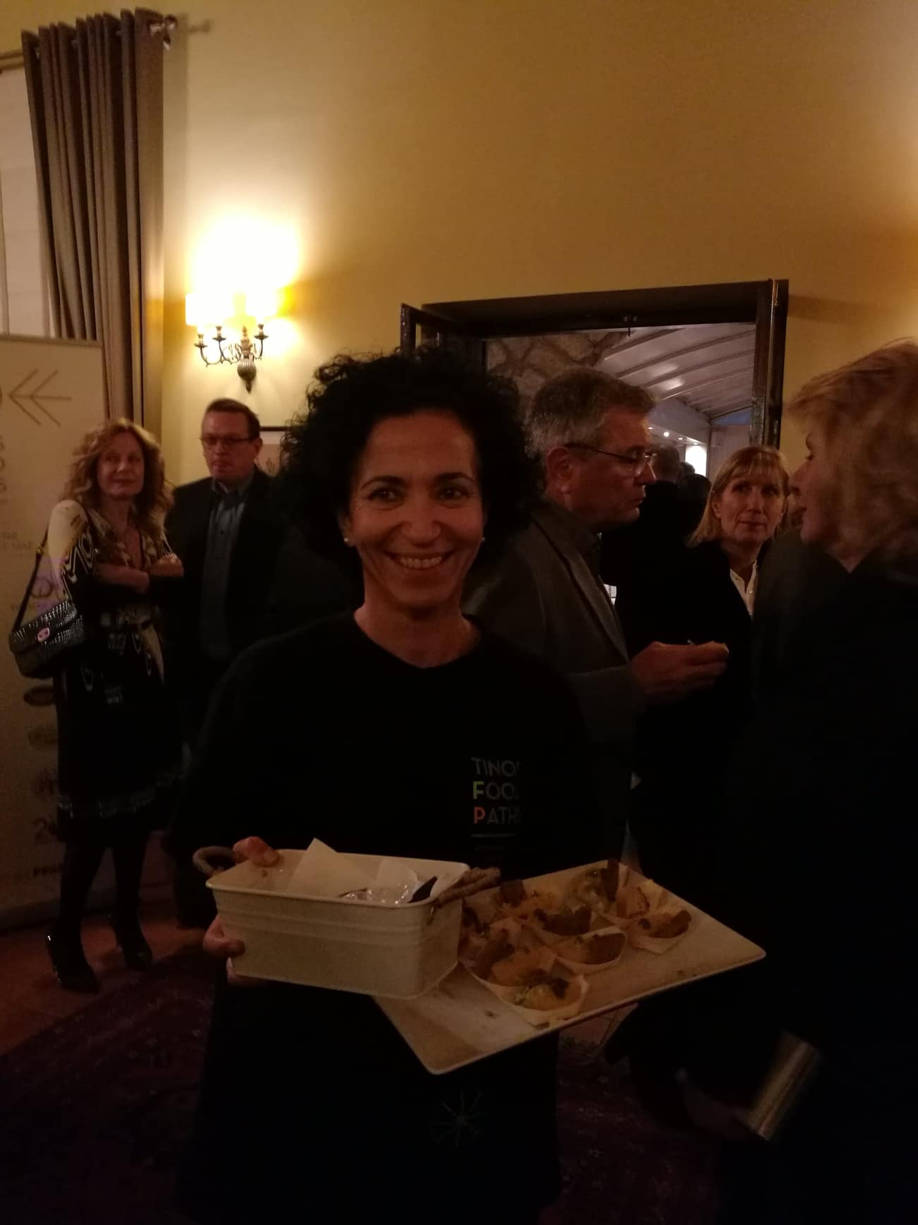 Στα τραπέζια, που είχαν αντιπροσωπευτικές ονομασίες των χωριών της Τήνου, οι προσκεκλημένοι απόλαυσαν τις γευστικές δημιουργίες των Tinos Food Paths. Περισσότερα από 25 μέλη της ομάδας ταξίδεψαν από το νησί για να επιμεληθούν τα εδέσματα, τα οποία έγιναν με τοπικά προϊόντα, βασισμένα στο σημαντικό για την Τήνο πανηγύρι της Αγίας Βαρβάρας που εορτάζεται στις 4 Δεκέμβρη.