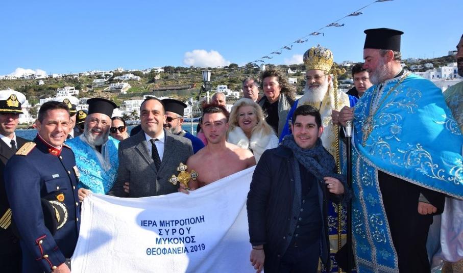 Παρά τον ψυχρό καιρό, δεκάδες νέοι Μυκονιάτες βούτηξαν με περίσσιο θάρρος στα παγωμένα νερά του Γιαλού όπου τον Τίμιο Σταυρό έπιασε ένας νέος λιμενικός.
