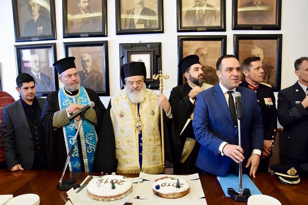 Στη συνέχεια, στο Δημαρχιακό Μέγαρο υπό την παρουσία του Δημάρχου κ. Κωνσταντίνου Κουκά, του Προέδρου του Δημοτικού Συμβουλίου, των κ.κ. Αντιδημάρχων, Προέδρων Νομικών Προσώπων του Δήμου, Δημοτικών Συμβούλων, του κ. Διοικητή της 6ης ΜΣΕΠ, του Λιμενάρχη, του Διοικητή του Αστυνομικού Τμήματος, του Διοικητή της Πυροσβεστικής, εκπροσώπων Υπηρεσιών, Φορέων, Συλλόγων, Οργανώσεων και πλήθους Μυκονιατών πραγματοποιήθηκε η κοπή της παραδοσιακής βασιλόπιτας του Δήμου Μυκόνου, το ψάλσιμο των καλάντων καθώς και η ομιλία του Δημάρχου Μυκόνου.