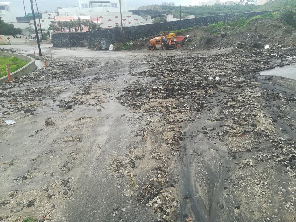 "Πολλά προβλήματα από την νεροποντη και σήμερα. Ειδικά στην περιοχή του Αεροδρομίου όπου είναι και τα περισσότερα προβλήματα. Προσοχή στους δρόμους στο κομμάτι κάτω από αεροδρόμιο ο δρόμος θα κλείσει σε λίγο όταν καθαριστεί ο δρόμος της ΔΕΗ. Αποφεύγετε τον παραλιακό από Μονολιθο προς παραλία Καρτεραδου. Ακόμα και στον δρόμο του Βουρβουλου μεγάλη προσοχή. Δυστυχώς η βροχή συνεχίζεται και κάνει πιο δύσκολα τα πράγματα. Όπως και να έχει προσέχουμε γιατί το φαινόμενο είναι σε εξέλιξη".
